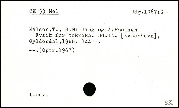 Fysik for teknika. Bd.lA. [København], Gyldendal,1966.