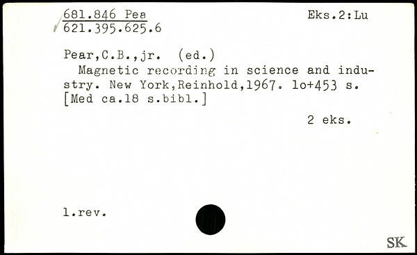 Pear,C.B.,jr. (ed.) Magnetic recording in science and industry. New York5Reinhold,1967, lo