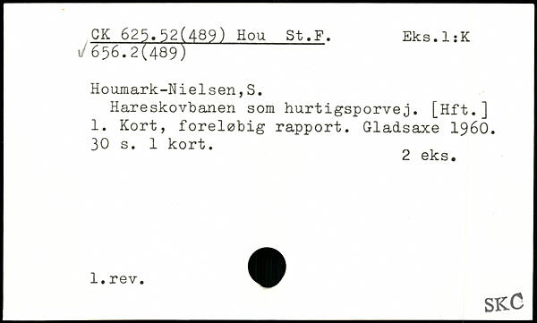 Hareskovbanen som hurtigsporvej. [Hft.] 1. Kort, foreløbig rapport. Gladsaxe 1960.