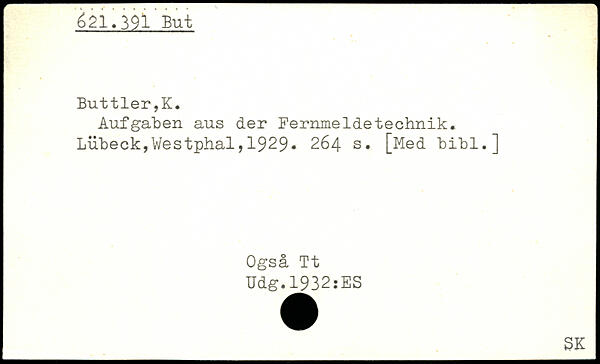 f ........... I é21.391 But Buttier,K. Aufgaben aus der Fernmeldetechnik.