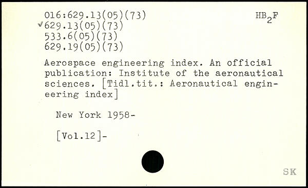 Aerospace engineering index. An official publication: Institute of the aeronautical sciences. [Tidl.tit.s Aeronautical engineering index]