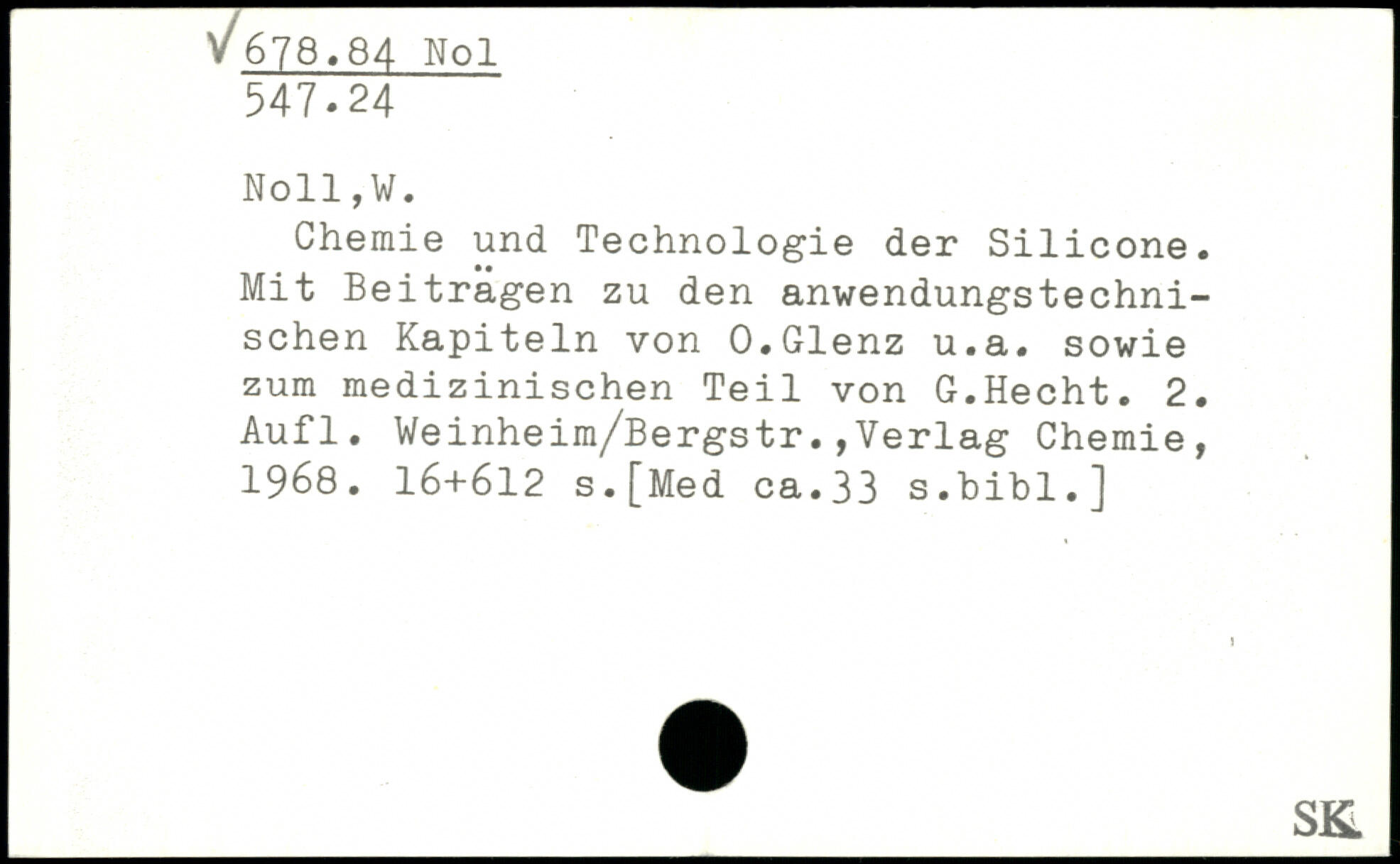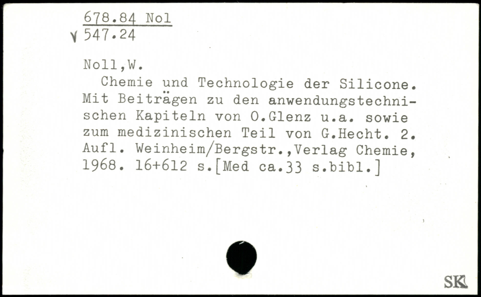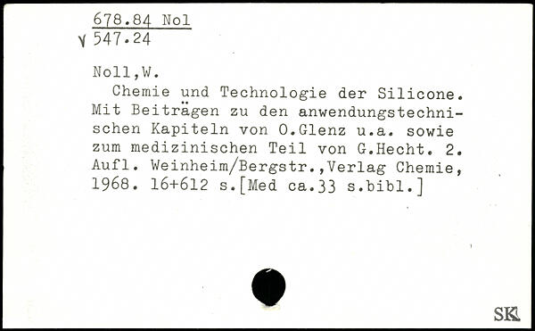 Chemie und Technologie der Silicone. Mit Beitragen zu den anwendungstechnischen Kapiteln von O.Glenz u.a. sowie zum medizinischen Teil von G.Hecht.
