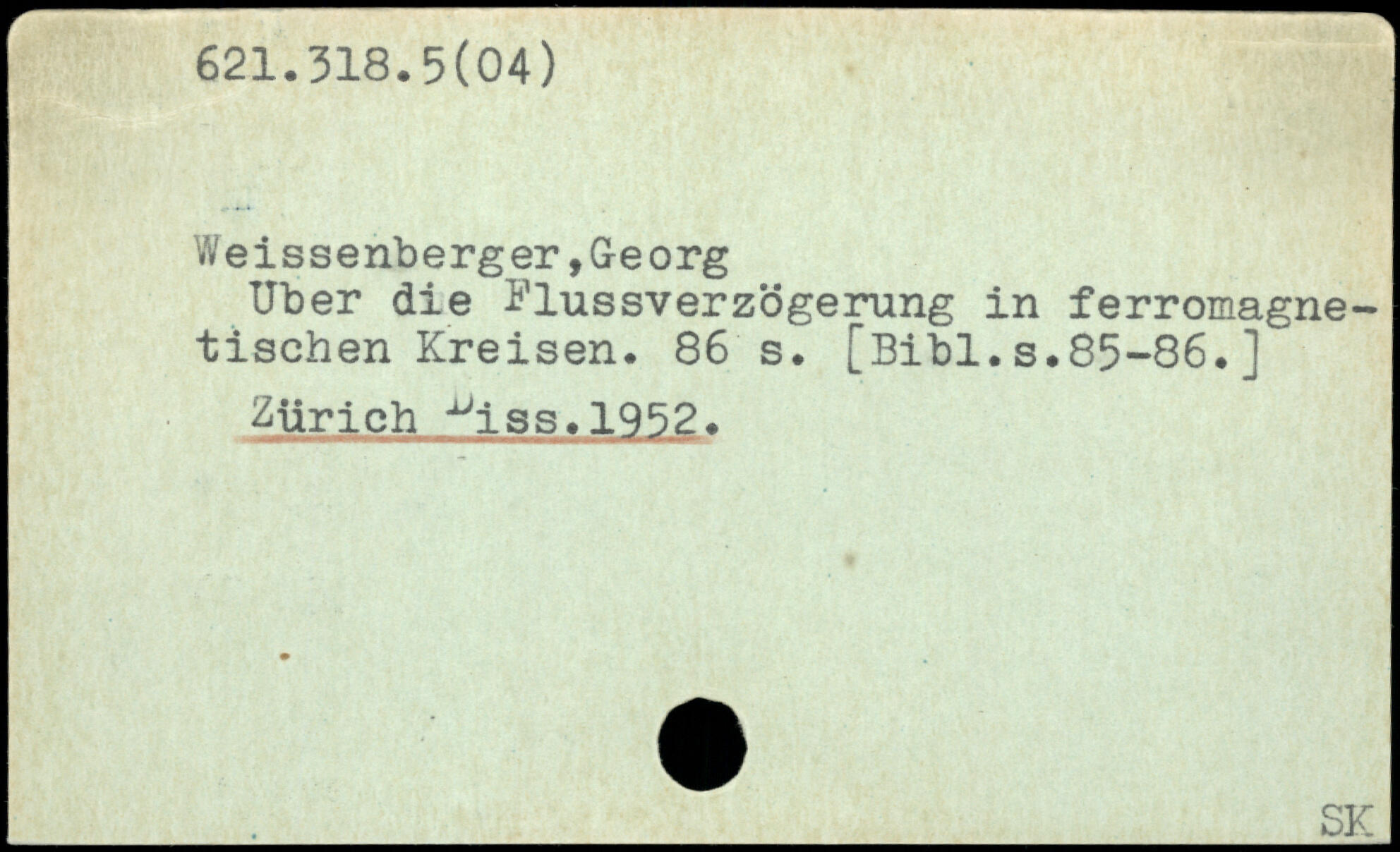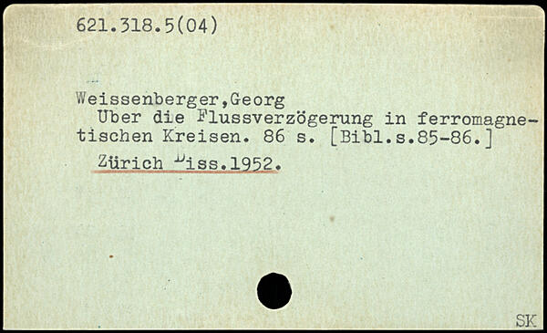Weissenberger,Georg Uber die Flussverzögerung in ferromagnetischen Kreisen.