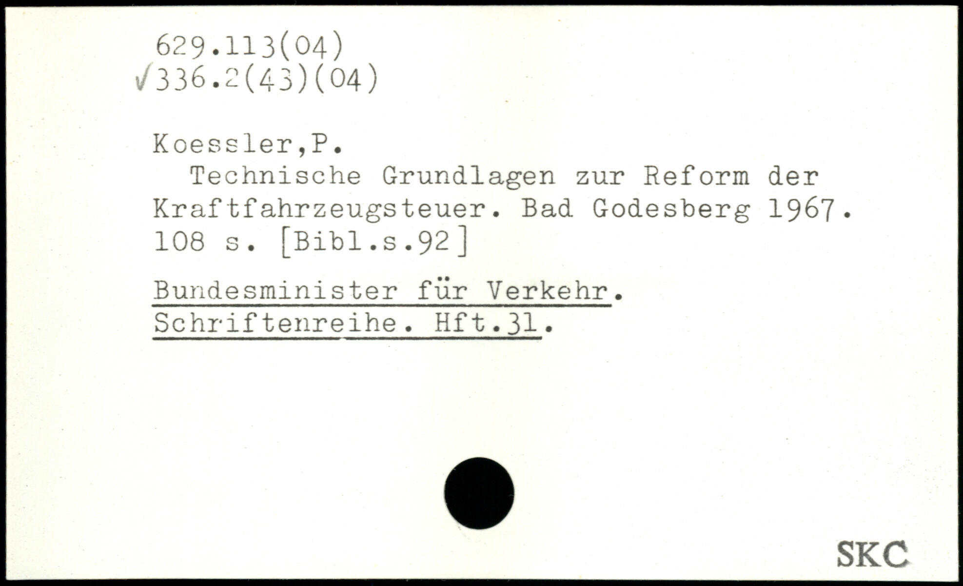 Technische Grundlagen zur Reform der Kraftfahrzeugsteuer. Bad Godesberg 1967