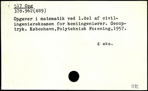 Opgaver i matematik ved l.del af civilingeniøreksamen for kemiingeniører. Genoptryk.