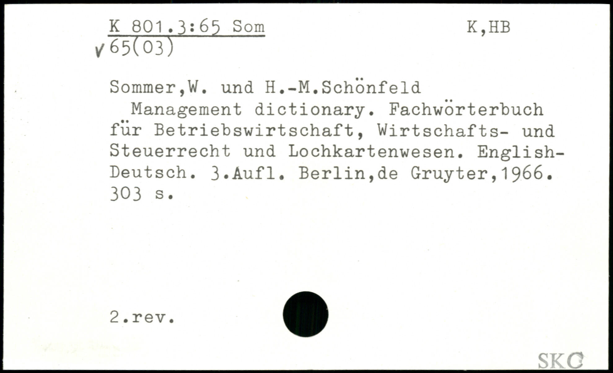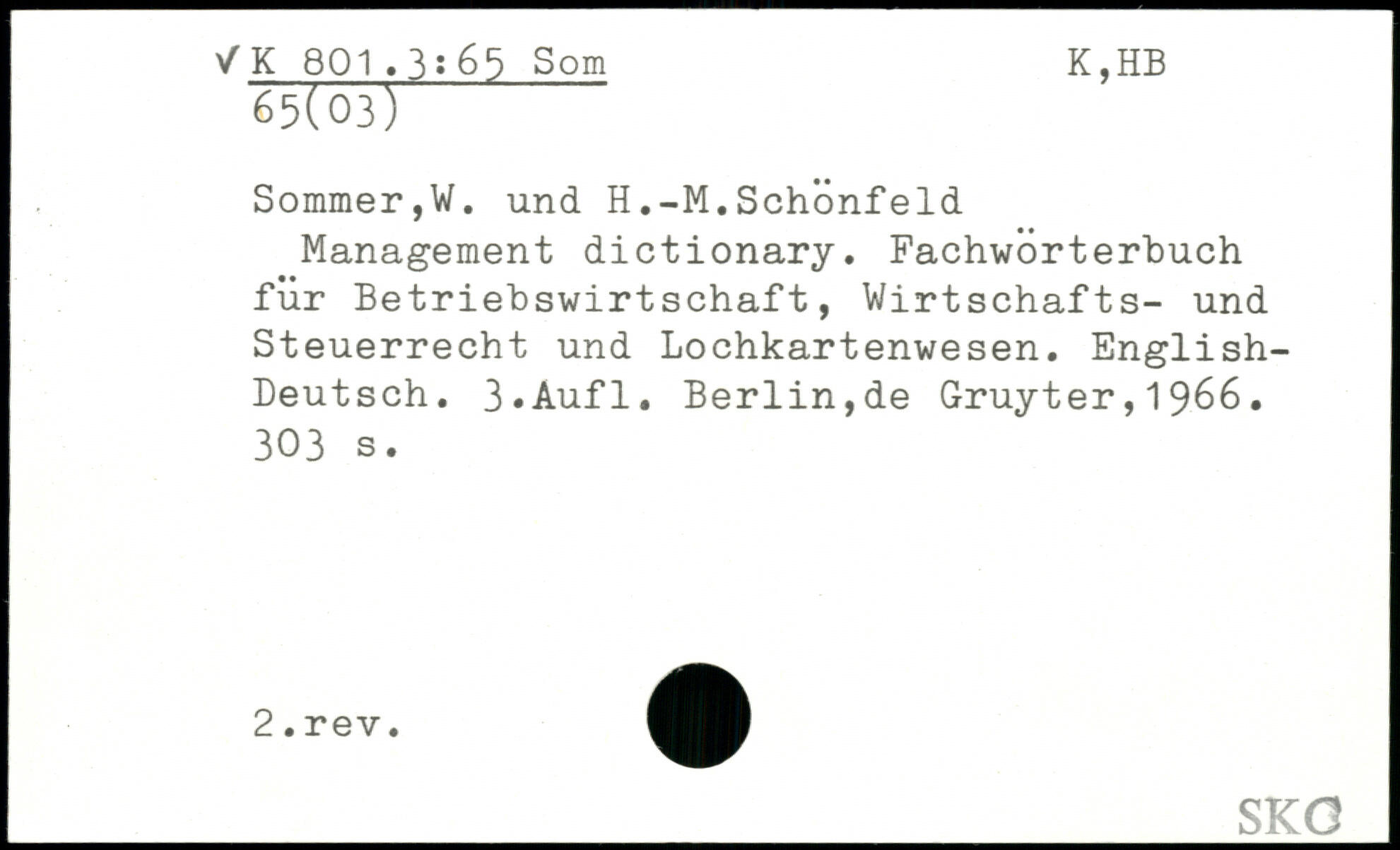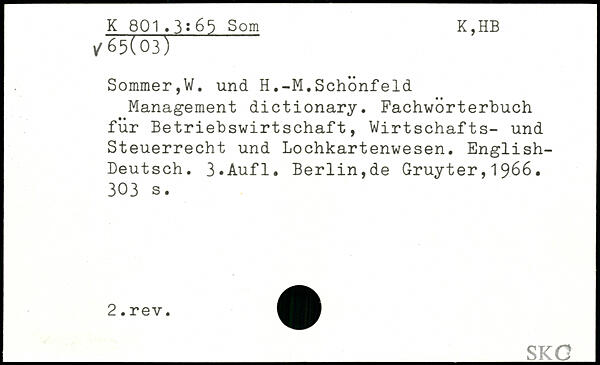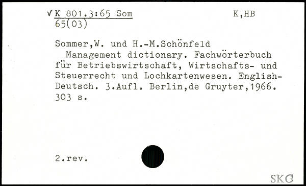 Management dictionary. Fachwörterbuch für Betriebswirtschaft, Wirtschafts- und Steuerrecht und Lochkartenwesen. English-Deutsch.