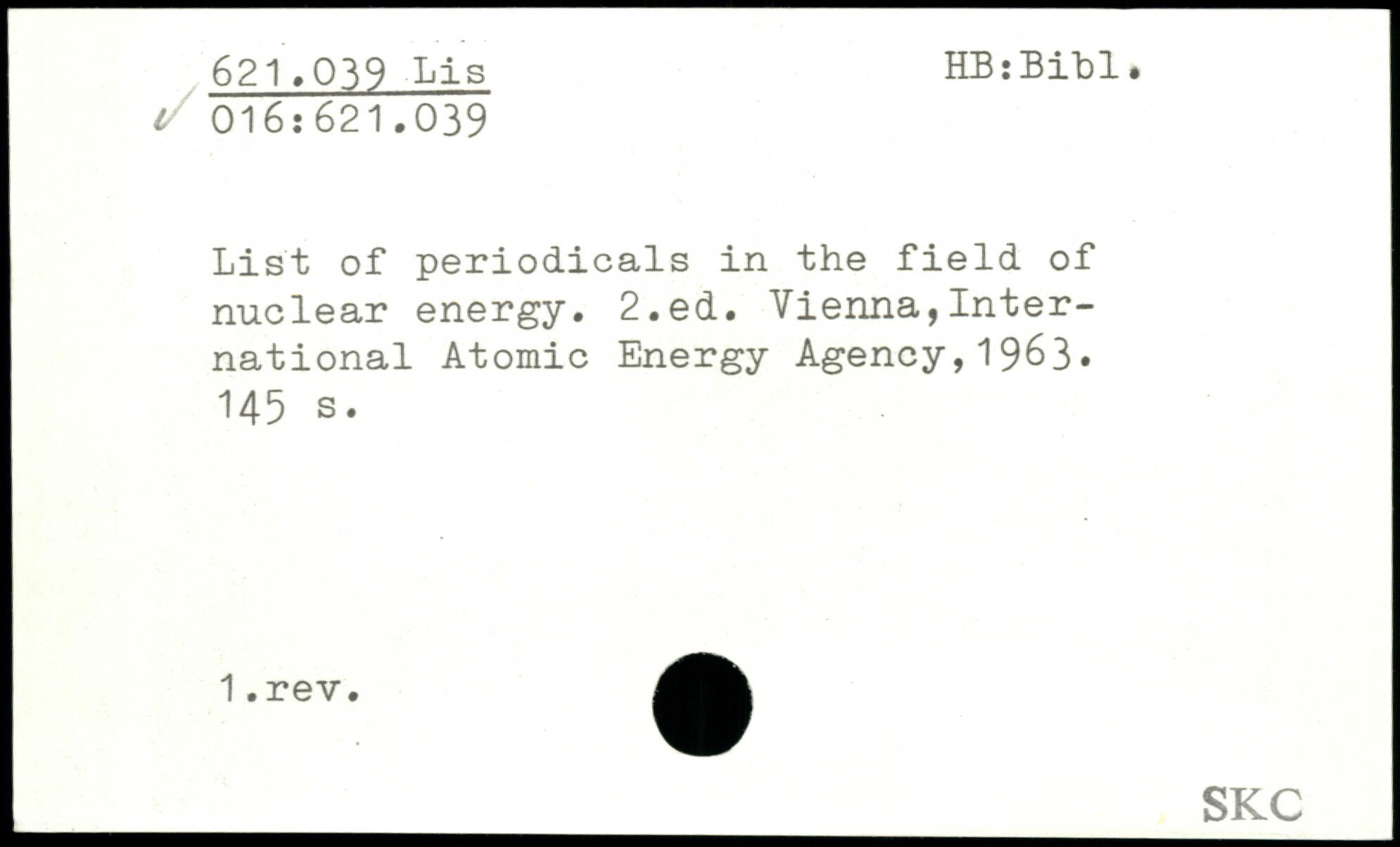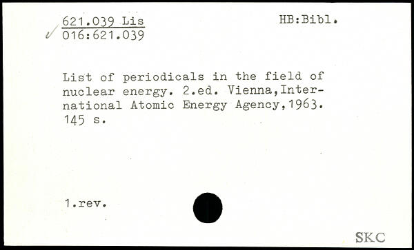 UDK: 016:621.039, 621.039 Lis