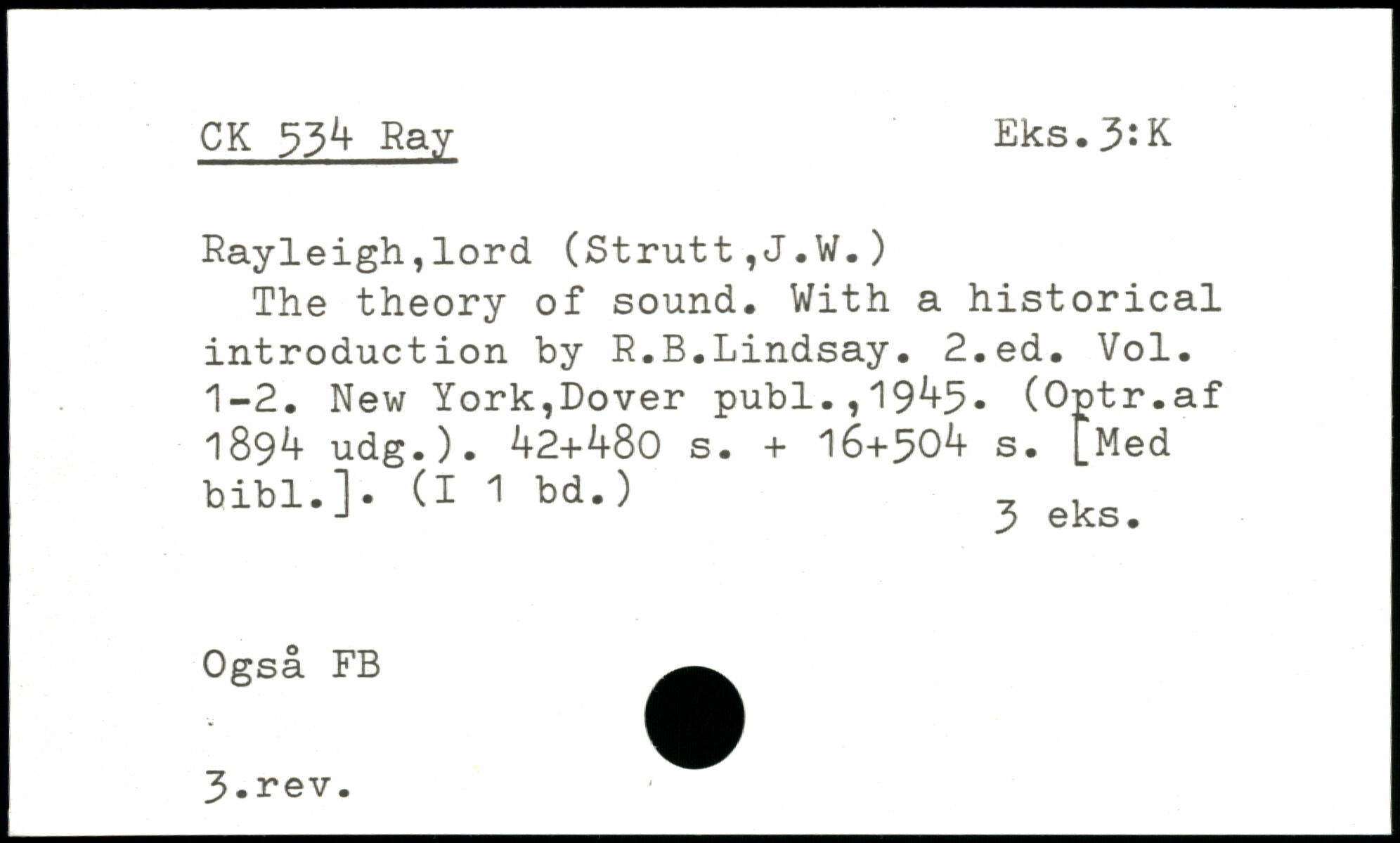 Rayleigh,lord (Strutt,J.W.) The theory of sound. With a historical introduction by R.B.Lindsay.