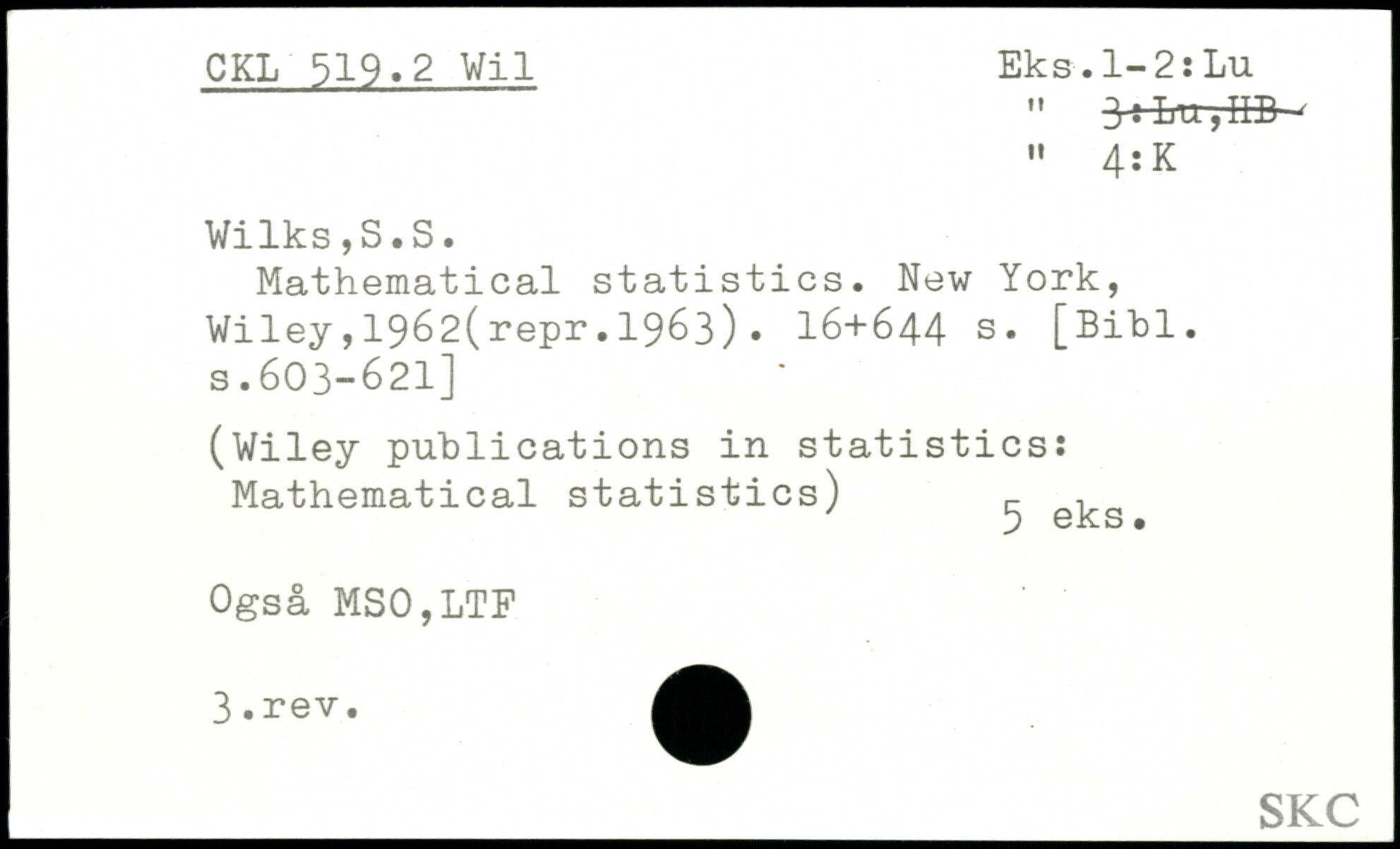 " jrtLTT-,IEB-" 4: K Vilks,S.S. Mathematical statistics.