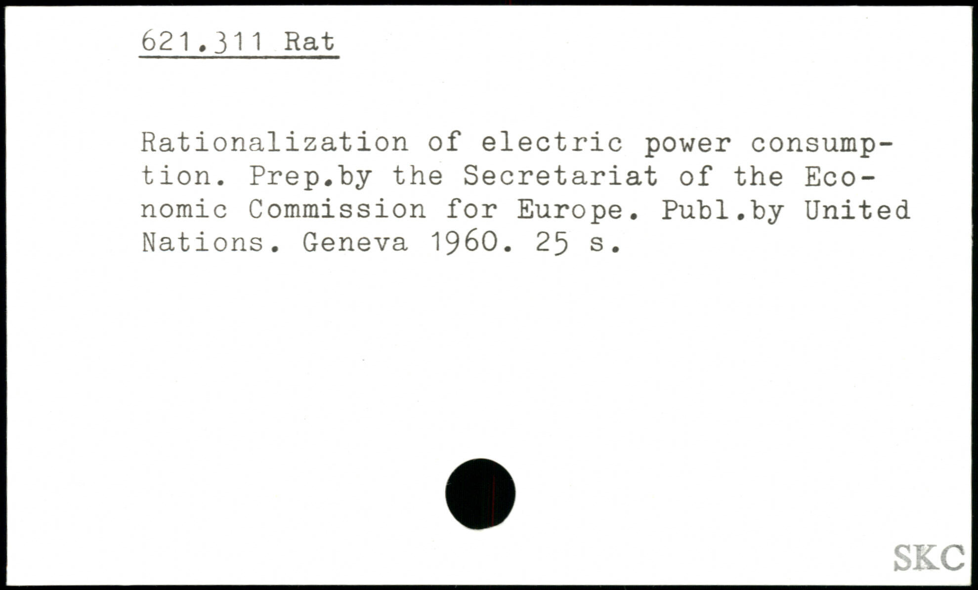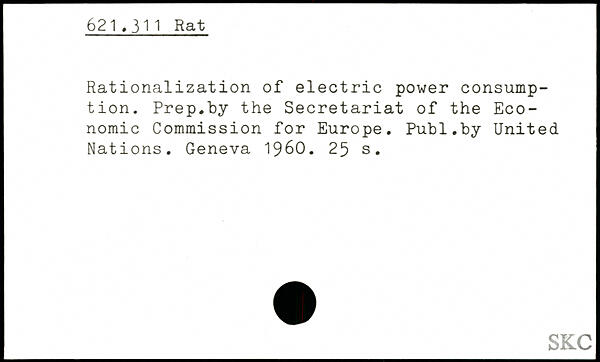 Rationalization of electric power consumption. Prep,by the Secretariat of the Economic Commission for Europe, Publ,by United Nations.