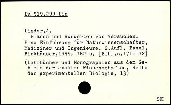 Planen und Auswerten von Versuchen. Eine Einführung für Naturwissenschafter, Mediziner und Ingenieure.