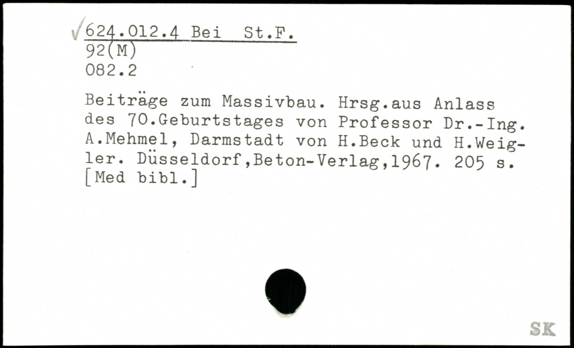 Beiträge zum Massivbau. Hrsg.aus Anlass des 70.Geburtstages von Professor Dr.-Ing. A.Mehmel, Darmstadt von H.Beck und H.Weig-ler.