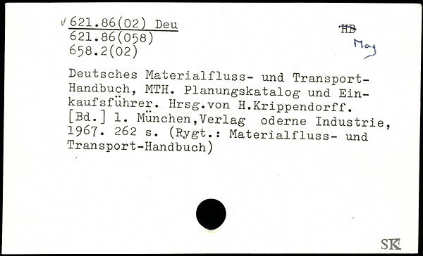 Deutsches Malerialfluss— und Transport-Handbuch, MTH. Planungskat al o g- und Einkauf sfuhrer. Hrsg.von H.Krippendorff. [Bd.J 1.
