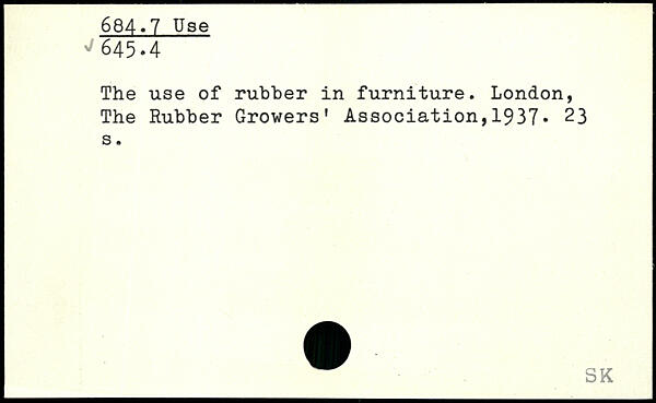 The use of rubber in furniture. London, The Rubber Growers' Association,1937.