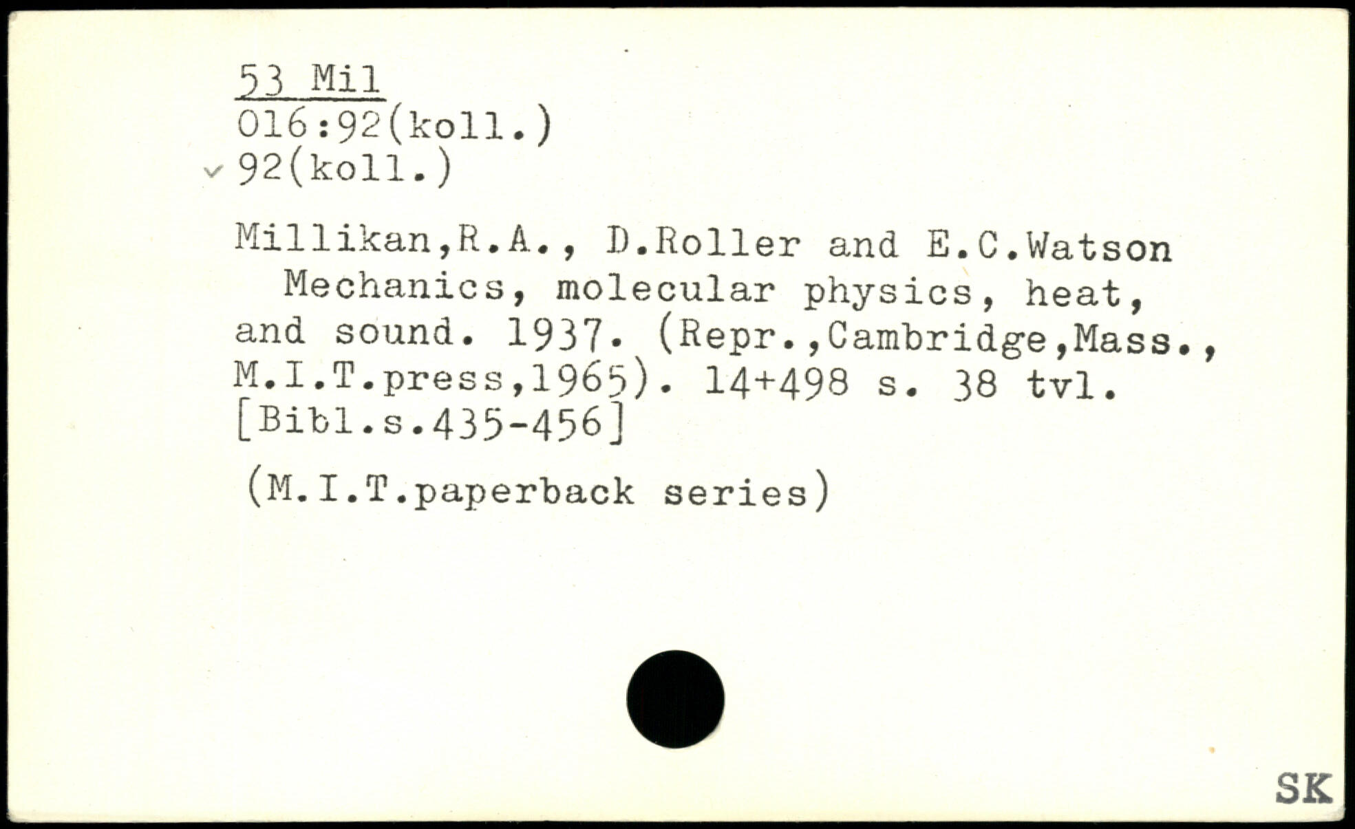 M1111kan,R.A. , I).Roller and E.C.Watson Mechanics, molecular physics, heat, and sound. 1937- (