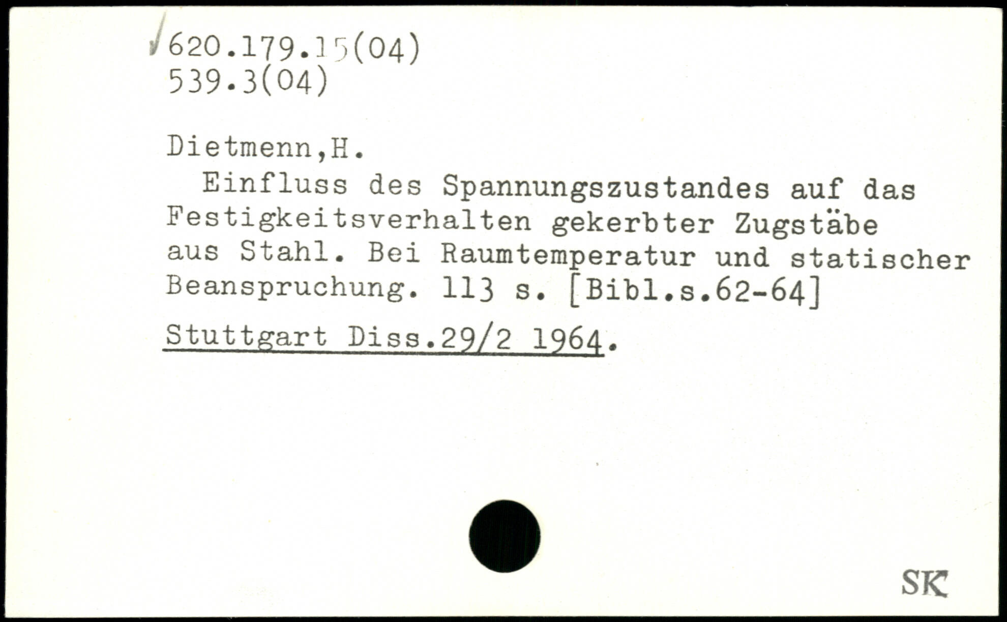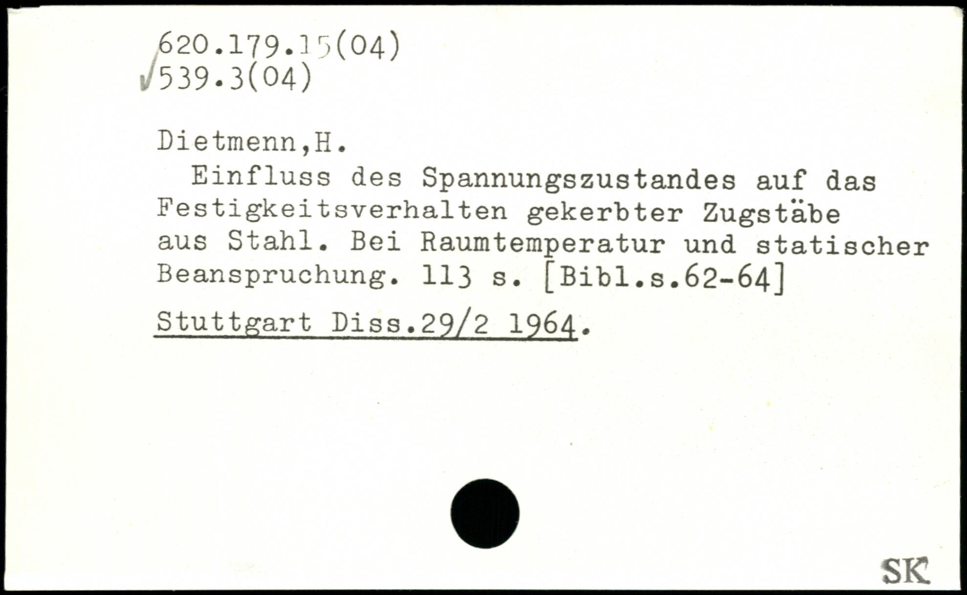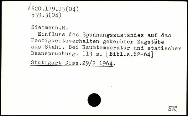 Einfluss des Spannungszustandes auf das Festigkeitsverhalten gekerbter Zugsta.be aus Stahl. Bei Raumtemperatur und statischer Beanspruchung