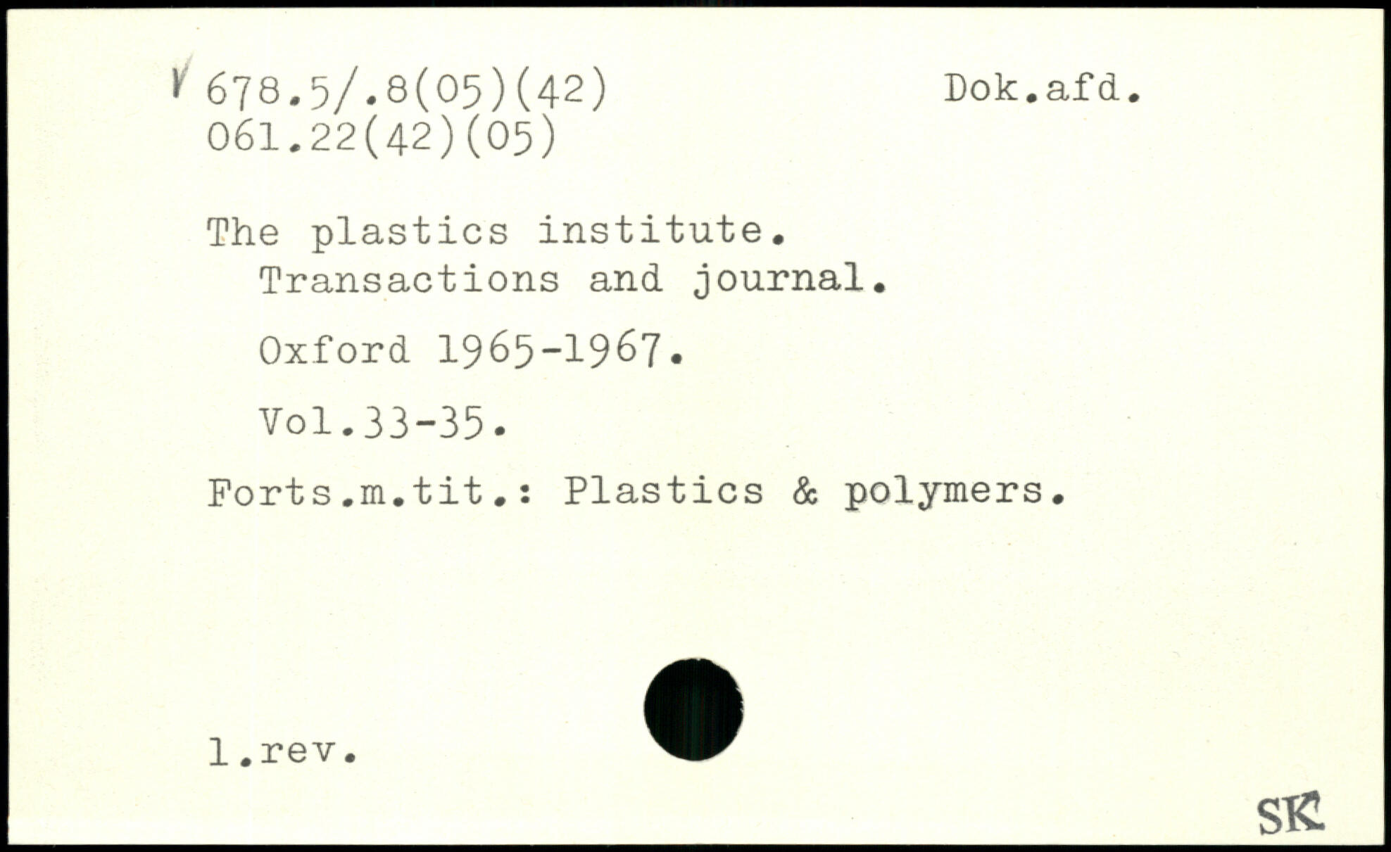 The plastics institute. Transactions and journal.