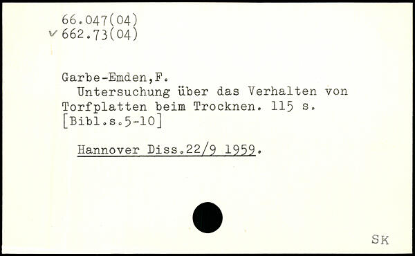 Untersuchung über das Verhalten von Torfplatten beim Trocknen.