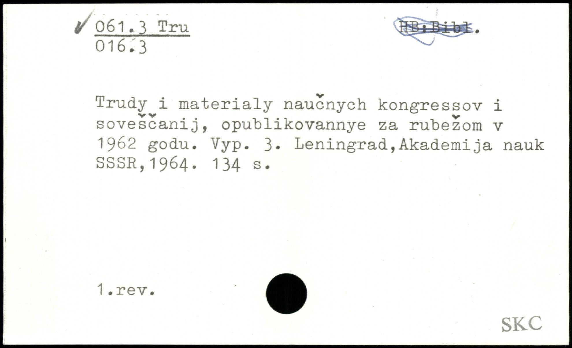 Trudy i materialy naucnych kongressov i sovescanij, opublikovannye za rubezom v 1962 godu. Vyp. 3