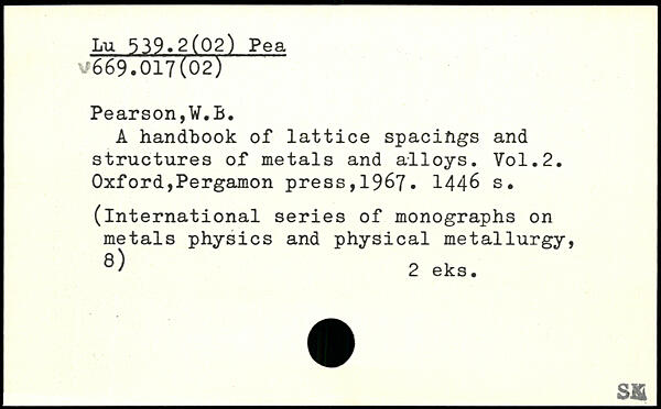 A handbook of lattice spacihgs and structures of metals and alloys.