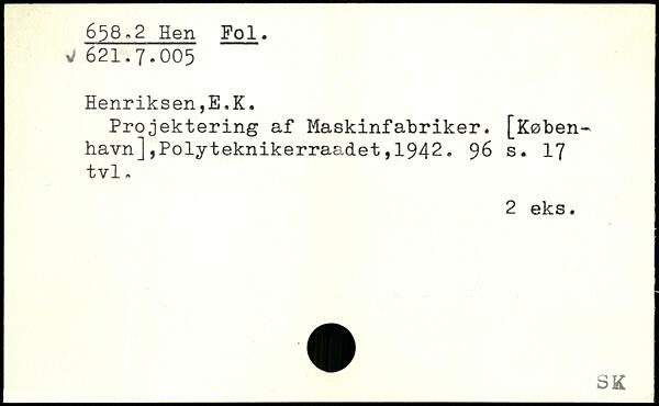 Projektering af Maskinfabriker. [København] ,Polyteknikerraadet,1942.