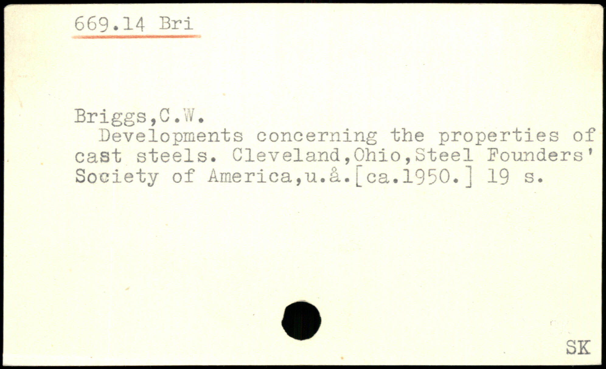 Developments concerning the properties of cast steels. Cleveland,Ohio,Steel Bounders. Society of America,u.a.[ca.1960.]