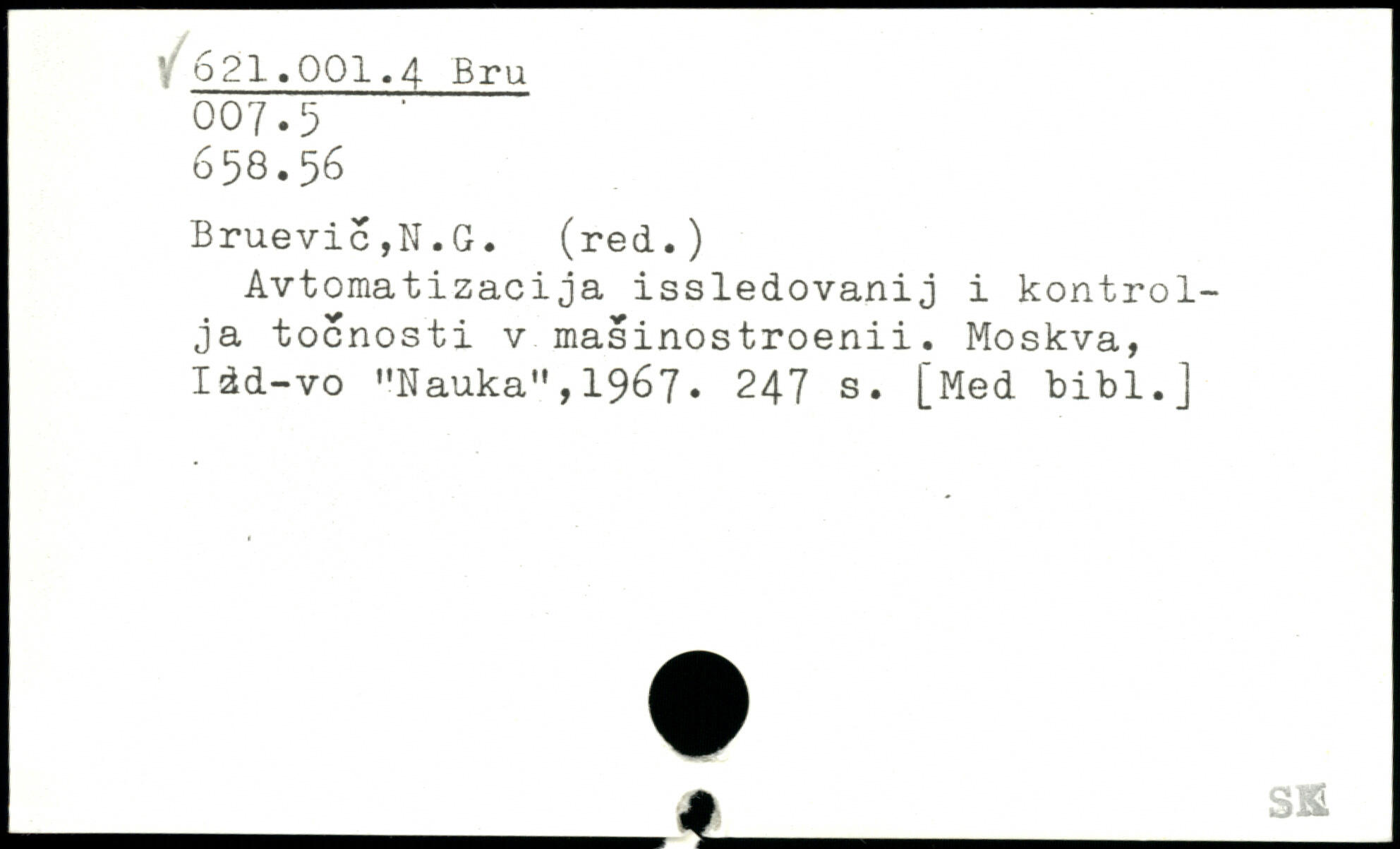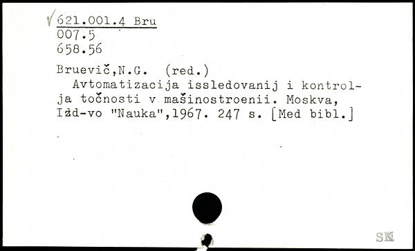 Avtomatizacija issledovanij i kontrolja tocnosti v masinostroenii. Moskva, Idd-vo "NaukaM,1967.