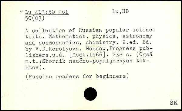 A collection of Russian popular science texts. Mathematics, physics, astronomy and cosmonautics, chemistry.