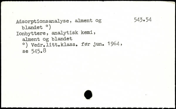 fi ■ " Adsorptionsanalyse, alment og 543.54 blandet .) Ionbyttere, analytisk kemi, alment og blandet .) Vedr.litt.klass, før jun. 19^4, se 545.3