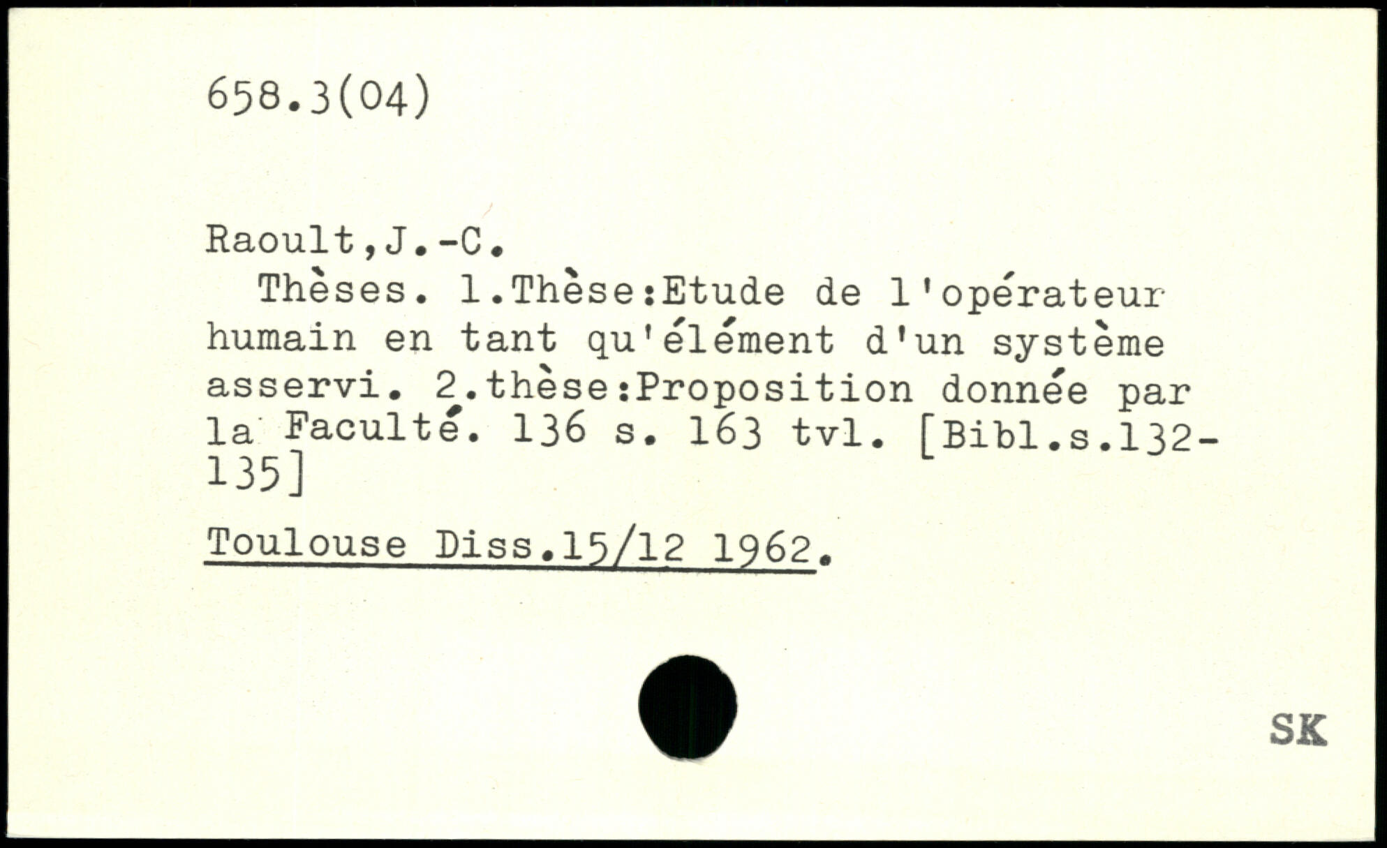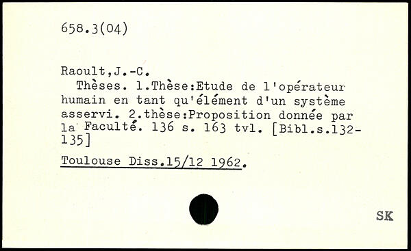 Thèses. 1. Thèse îEtude de 1' operateur-humain en tant qu'élément d'un système asservi. 2.thèsetProposition donnée par ! la Faculté.