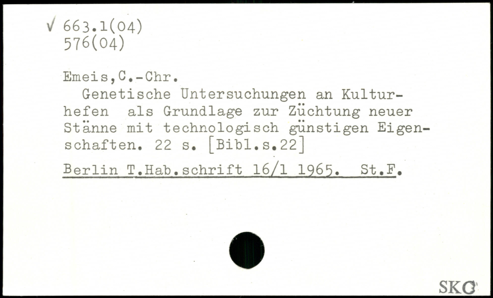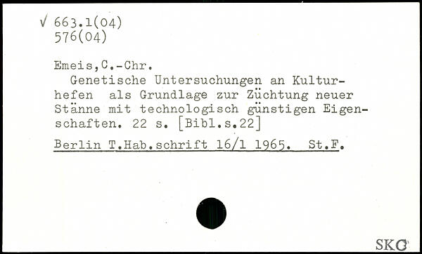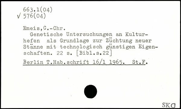 Emeis,C,-Chr. Genetische Untersuchungen an Kulturhefen als Grundlage zur Züchtung neuer Stänne mit technologisch günstigen Eigenschaften.