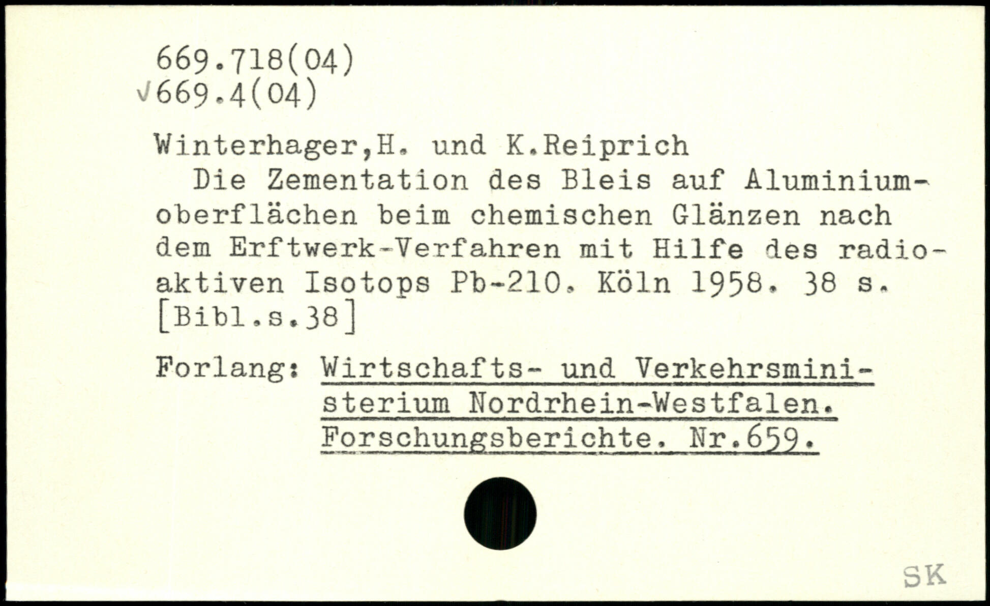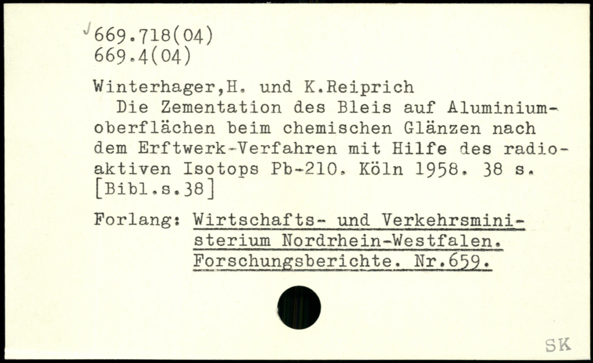 Winterhager,H, und K.Reiprich Die Zementation des Bleis auf Aluminiumoberflächen beim chemischen Glänzen nach dem Erftwerk-Verfahren mit Hilfe des radioaktiven Isotops Pb-210.