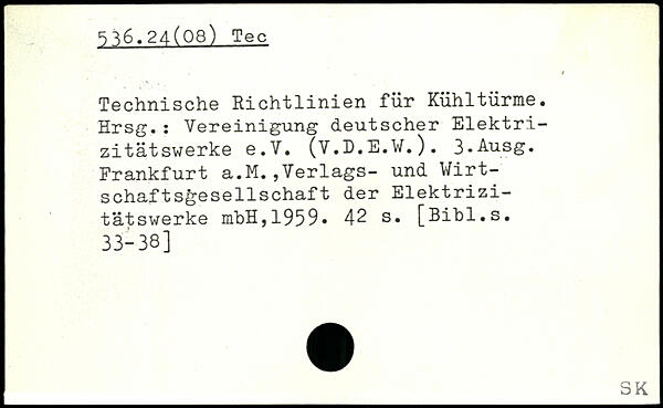 Technische Richtlinien für Kühltürme. Hrsg.: Vereinigung deutscher Elektrizitätswerke e.V. (V.D.E.W.). 3.Ausg. Frankfurt a.M.,Verlags- und Wirtschaft sgesellschaft der Elektrizitätswerke mbH,1959