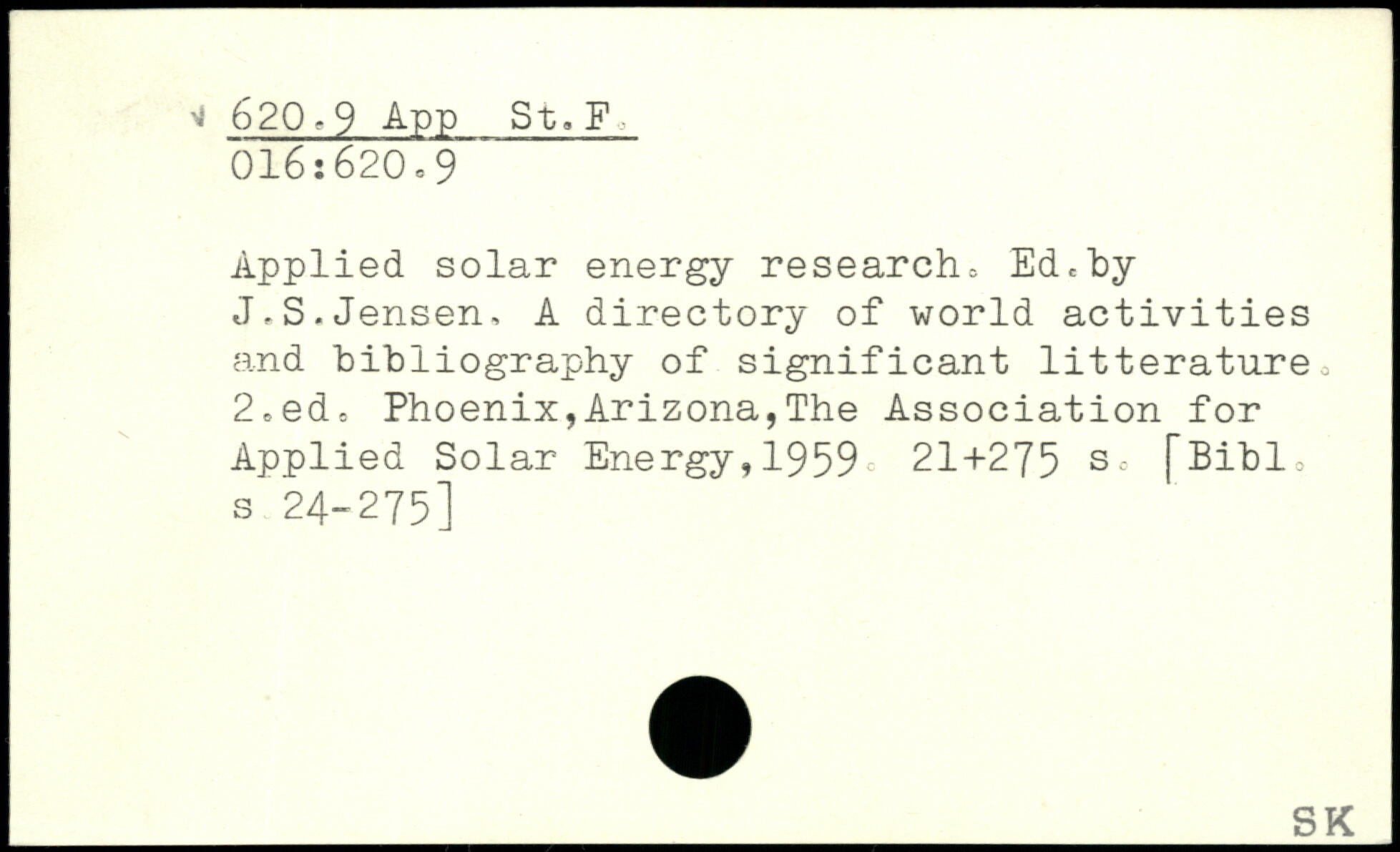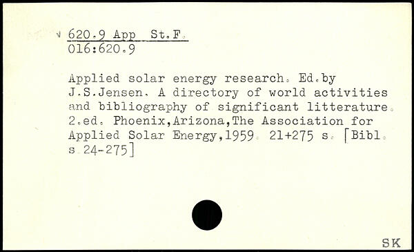Applied solar energy research, Ed.by J.S.Jensen, A directory of world activities and bibliography of significant litterature