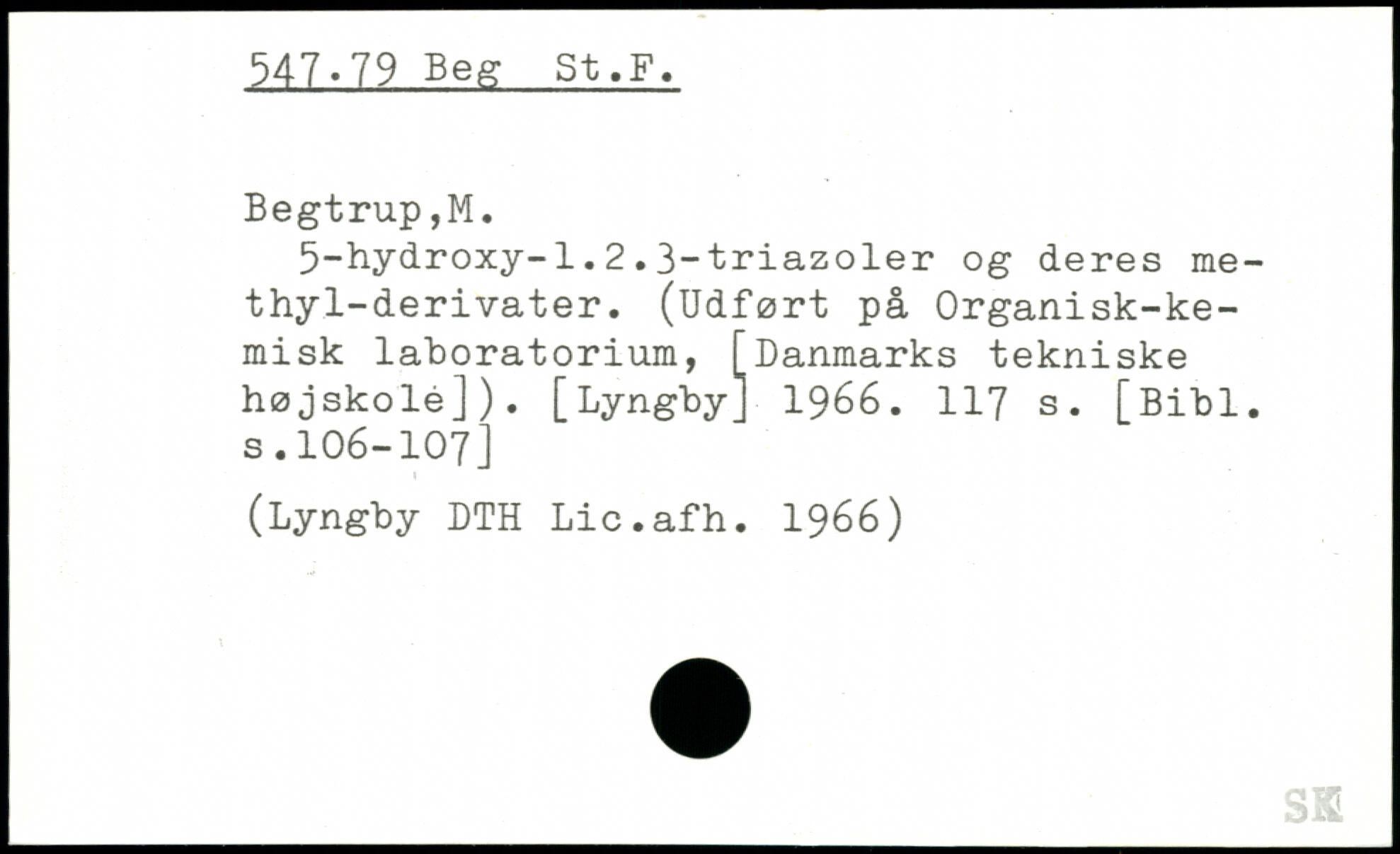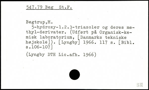 5-hydroxy-l.2.3-triazoler og deres me-thyl-derivater. (Udført på Organisk-ke-misk laboratorium, [Danmarks tekniske højskolé]). [Lyngby] 1966.