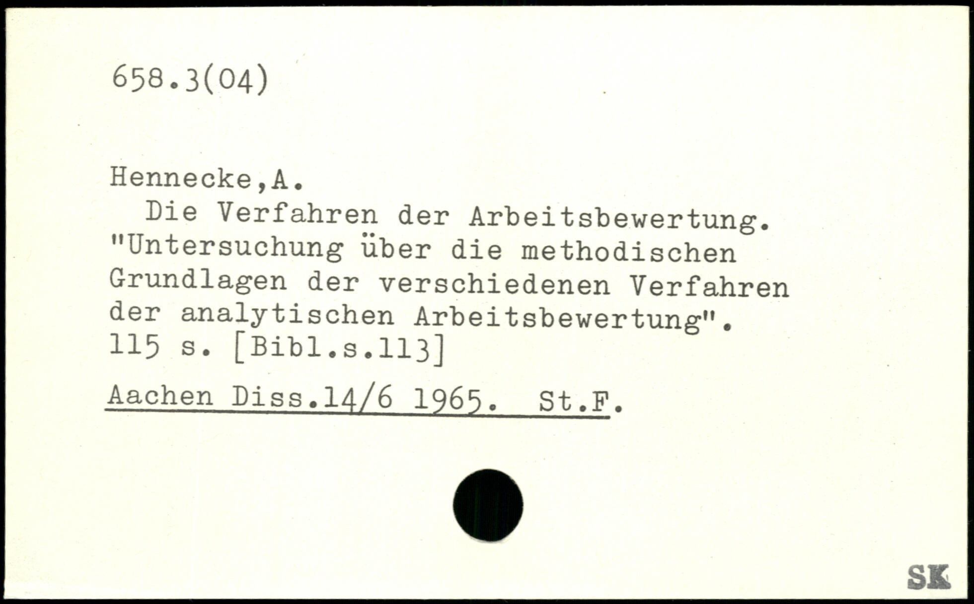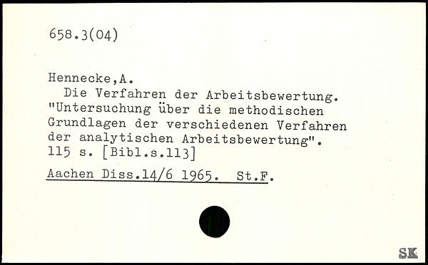 Die Verfahren der Arbeitsbewertung. "Untersuchung über die methodischen Grundlagen der verschiedenen Verfahren der analytischen Arbeitsbewertung".