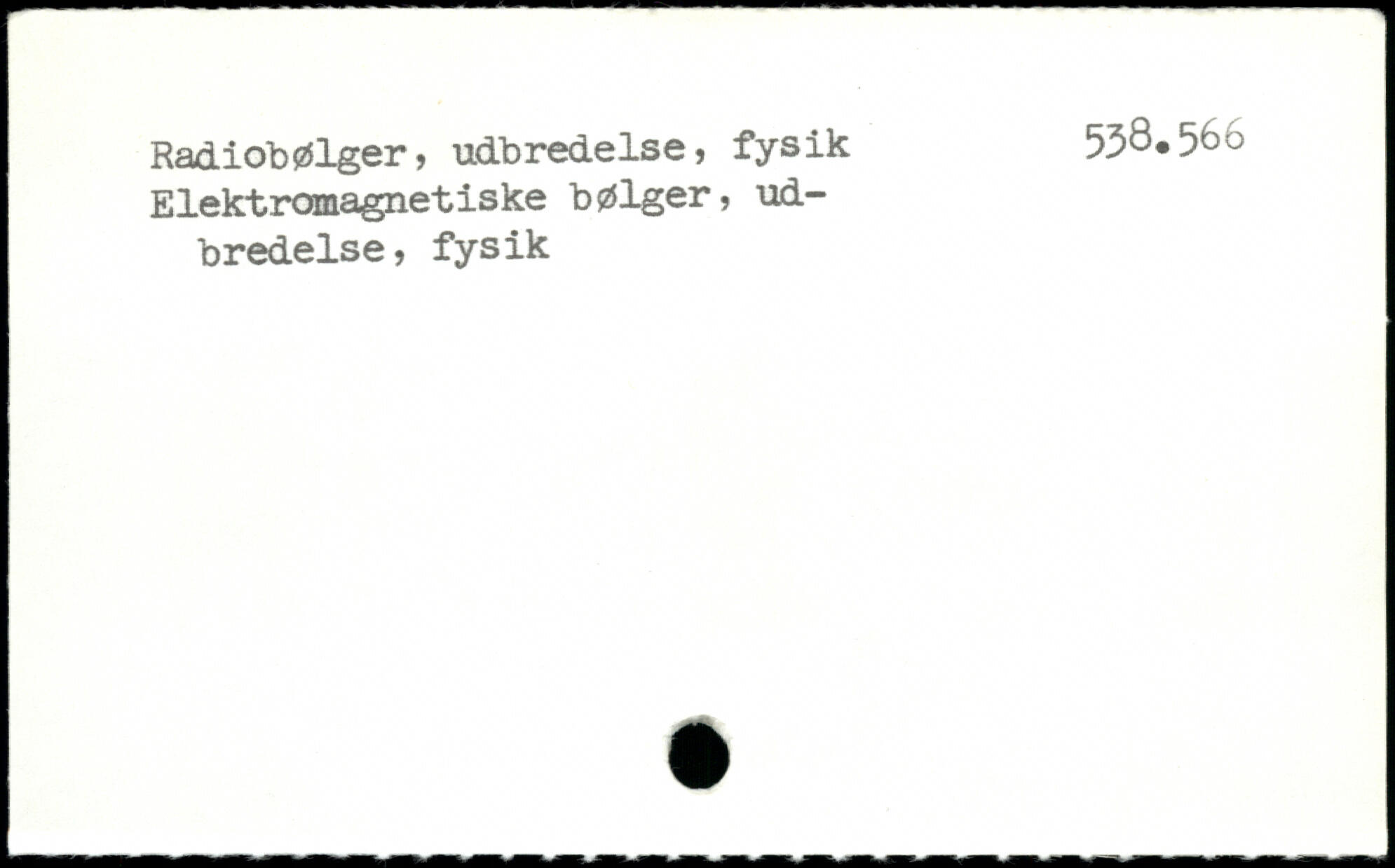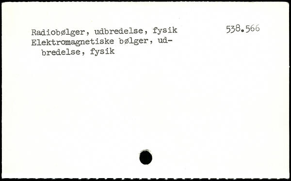 Radiobølger, udbredelse, fysik 538.566 Elektromagnetiske bølger, udbredelse, fysik