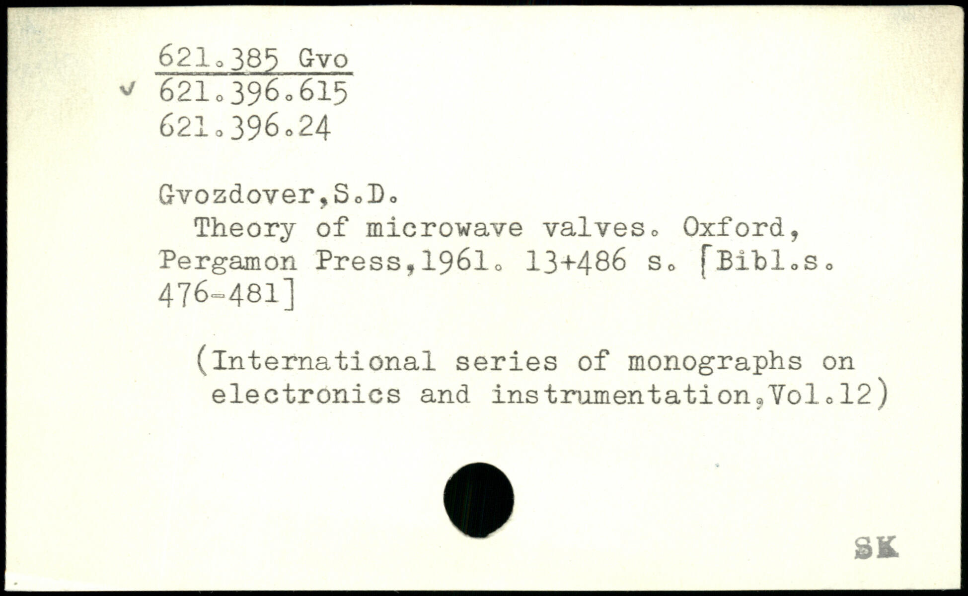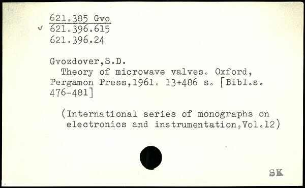 Theory of microwave valves, Oxford, Pergamon Press,19610 13+486 se