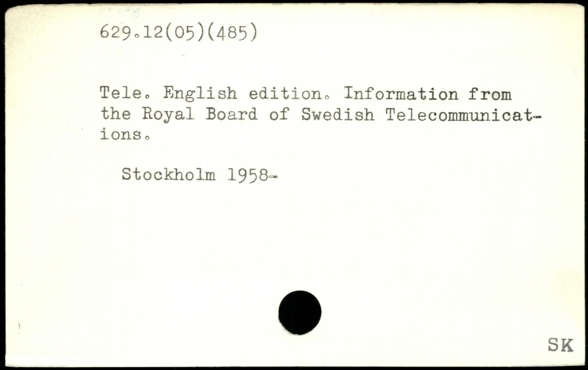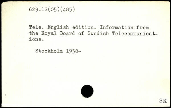 Tele,, English edition, Information from the Royal Board of Swedish Telecommunications