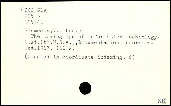 The coming age of information technology. U.st.(tr.ir.S.A. ) documentation incorporated , 1967. l