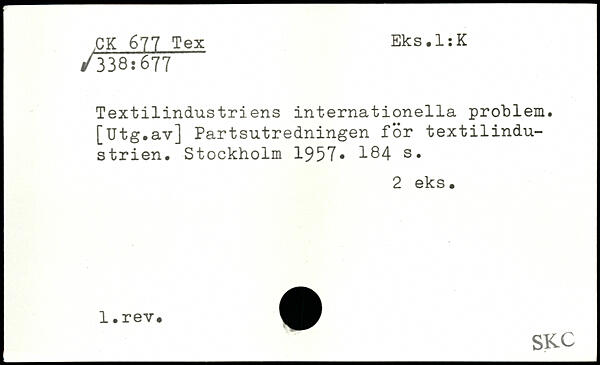 Textilindustriens internationella problem. [Utg.av] Partsutredningen för textilindustrien.