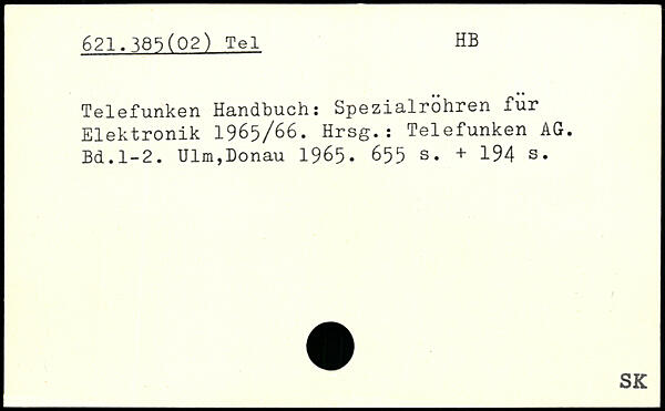 Telefunken Handbuch: Spezialrohren für Elektronik 1965/66. Hrsg.: Telefunken AG.