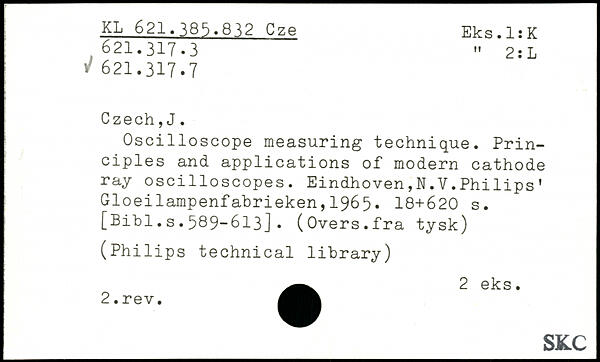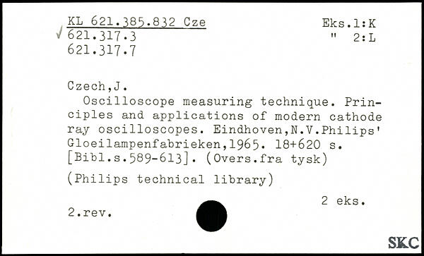 Oscilloscope measuring technique. Principles and applications of modern cathode ray oscilloscopes. Eindhoven,N.V.Philips 1 Gloeilampenfabrieken,1965.