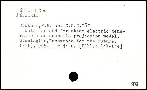 Water demand for steam electric generation: an economic projection model. Washington,Resources for the future, (RfF),1965.