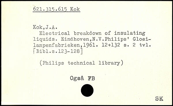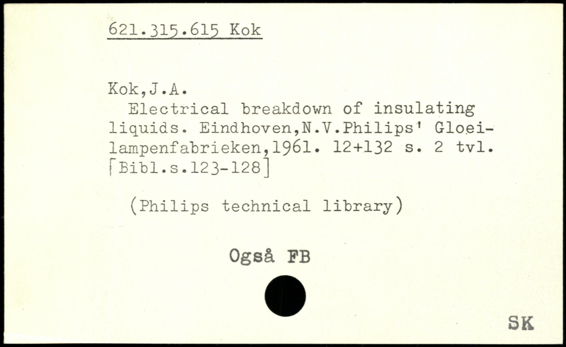 Electrical “breakdown of insulating liquids. Eindhoven,N.V.Philips1 Gloei-lampenfabrieken,1961.