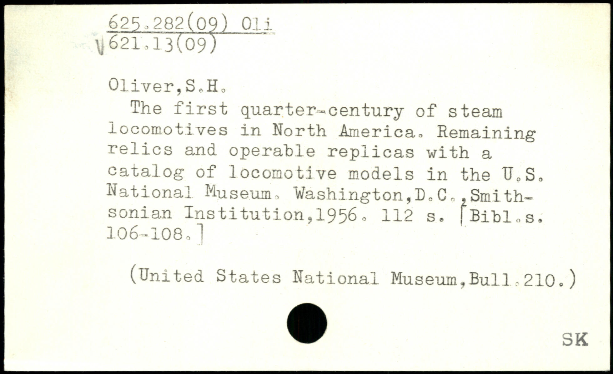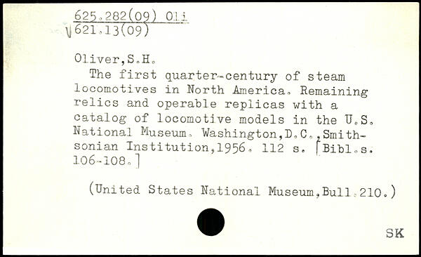 Oliver,S,Ho The first quarter-century of steam locomotives in North America, Remaining relics and operable replicas with a catalog of locomotive models in the U,S, National Museum, Washington,C,,Smithsonian Institution,19560