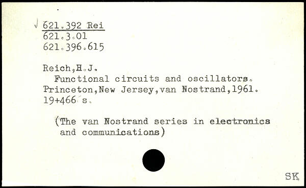 Functional circuits and oscillators, Princeton,New Jersey,van Nostrand,1961
