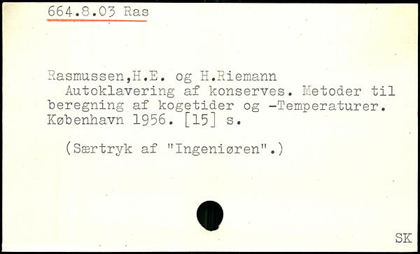 Autoklavering af konserves. Metoder til beregning af kogetider og -'Temperaturer.