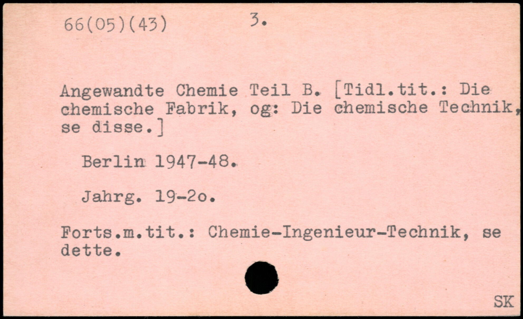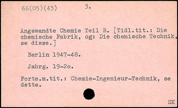 Angewandte Chemie Teil B. [Tidl.tit.: Die chemische Fabrik, og: Die chemische Technik, se disse.]