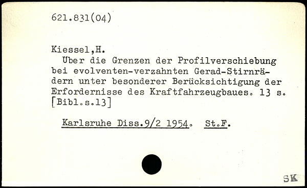 Uber die Grenzen der Profilverschiebung bei evolventen-verzahnten Gerad-Stirnrädern unter besonderer Berücksichtigung der Erfordernisse des Kraftfahrzeugbaues